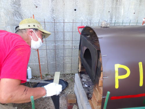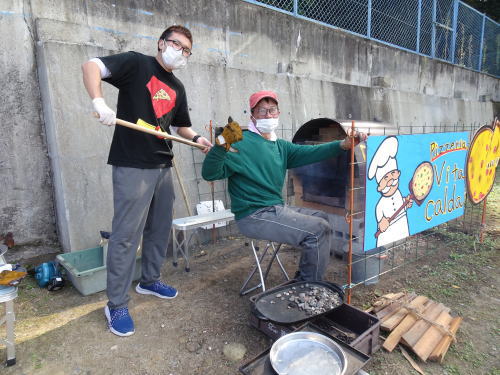 さて、みんながコロナ禍でも楽しめるようにと、男性職員たちが力を合わせてピザ窯を造ってくれました。
