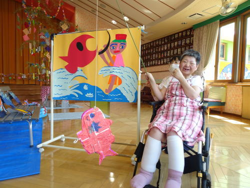 食後は魚釣りゲームをして楽しみました。この日のために海のいきものつくりに取り組んでいます!!