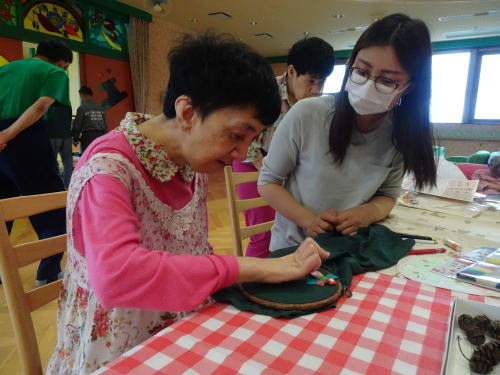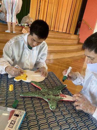 手芸の時間がみんな大好きです。どんな飾りが出来るか楽しみにしていてください。