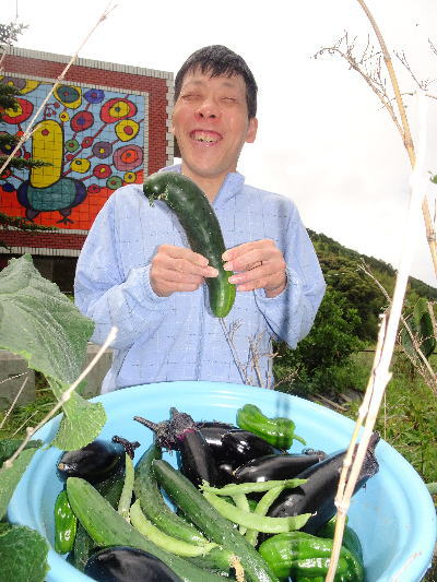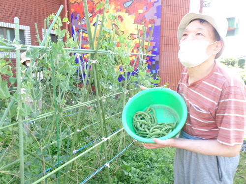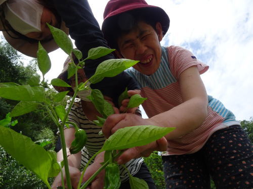 日中活動では、毎日みんなで草抜きをしたり、水やりをしたり、心を込めて野菜を育てました。沢山の夏野菜が収穫出来ました。