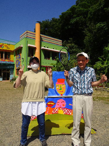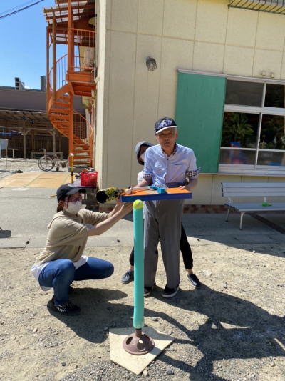 美味しいお好み焼きをいただいた後は、テニス野球をして遊びました。