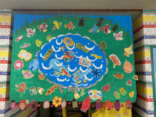 一人一人が今年の思い出を描き、大きな一枚の絵が完成しました。