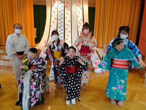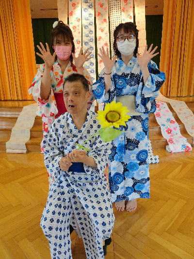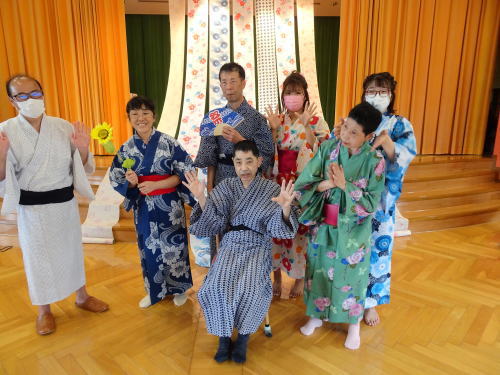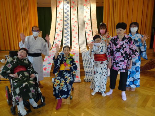 いろんな場に散っている職員たちは、写真には映っていませんがみんなゆかたを着ています。みんなみんな元気です!!