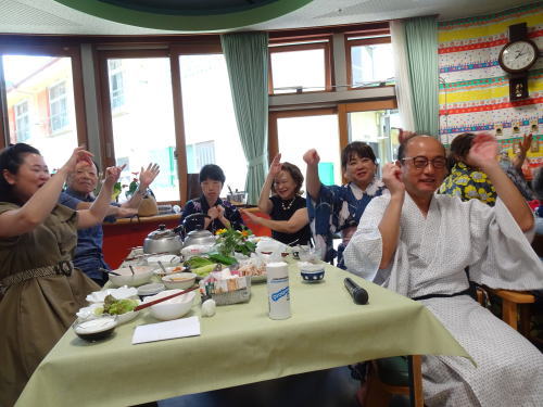 この3年半、ご家族の方と一緒に食事をすることも出来ず、傍でお話することすらできない辛いコロナ禍の日々でした。今日は久しぶりに家族の会の皆さんと一緒に食事をして、夏祭りの行事を行ないます。