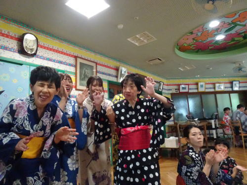 ゆかたを着てハイポーズ!4年ぶりの集合写真です。