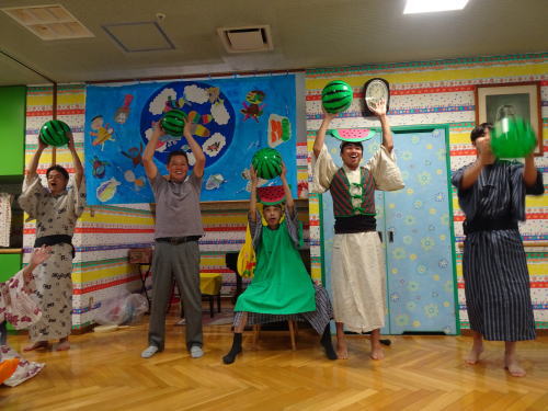 夏祭りの行事では、若い職員たちが楽しい企画を考えてくれました。
