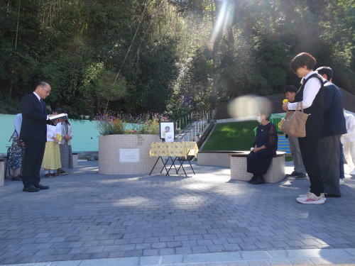 今年完成した円の広場で安子さんの納骨の前のお祈りをしました。