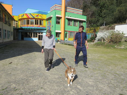 こちらは新しいなかまのルナちゃんです。犬の散歩がみんなの日課に加わりました。
