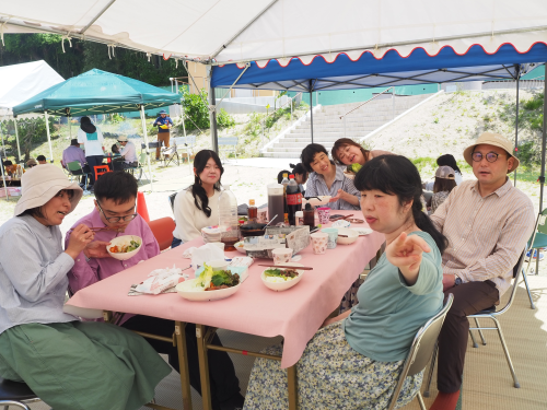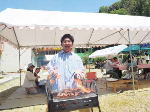 何日も前からお天気とにらめっこしながらテントを張って準備をしてくれたくれた男性職員の皆さん、ありがとうございます!!おかげさまでテントの中は快適です。