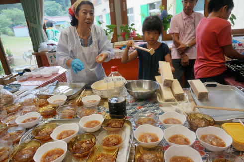 「ところてん」なんと天草から作ったのですよ。ところてん器も手作りです。