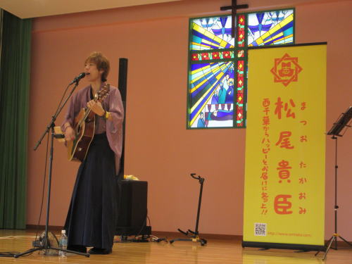 皆の大好きな歌やオリジナル曲、いろんな歌を歌って下さり、会場と松尾さんが一体となり大盛り上がりでした。