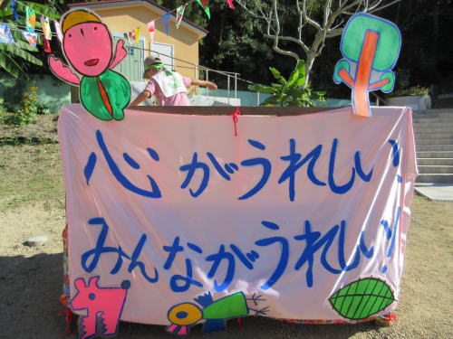 今年の運動会のテーマは「心がうれしい、みんながうれしい」です。