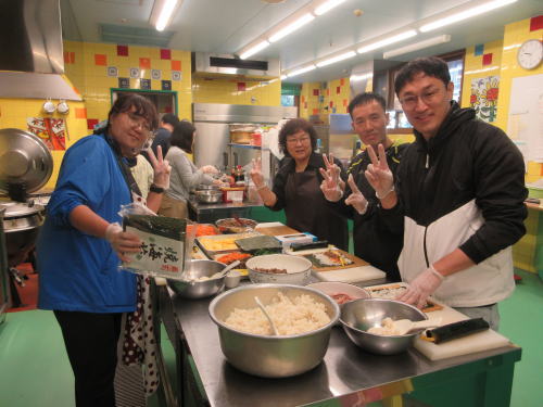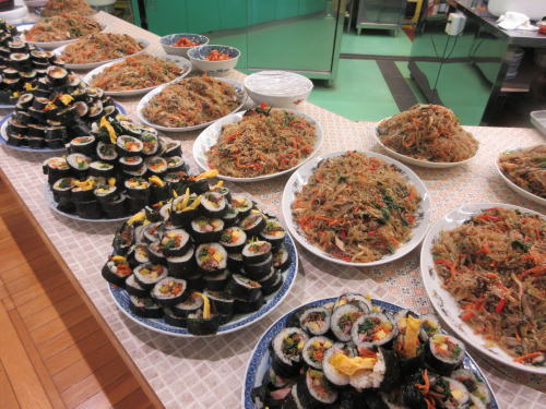 作品作りをしている間に、もうひとグループの皆さんはキンパップとチャプチエを作って下さいました。キンパを巻くのの早いこと早いこと❣