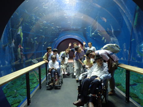 止揚学園に入園している仲間達は、小さな頃から夏になると彦根にある「憩いの家」というところで一泊二日のキャンプに出掛けていました。これまで小豆島に船で出かけたり、福井県の高浜や滋賀県のマキノ町や近江今津に行ったり色んな所でキャンプをしています。