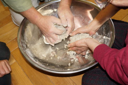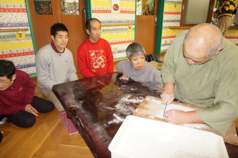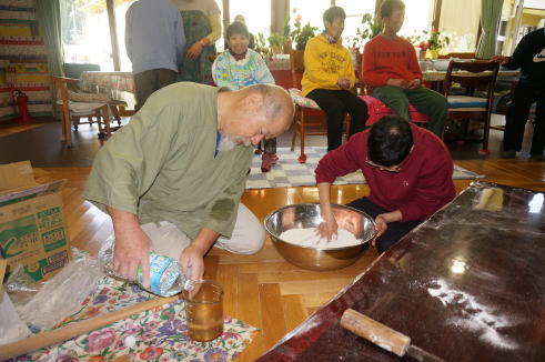 90人分なので、5回もこねて、伸ばして、切って下さいました。