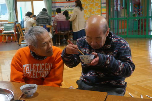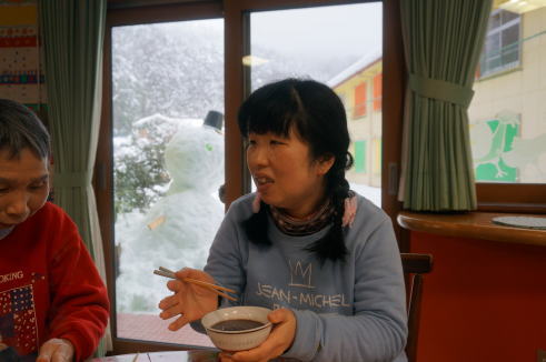 雪遊びのあとは雪だるまさんを観ながらあったかーいおぜんざいをおやつにいただきました。