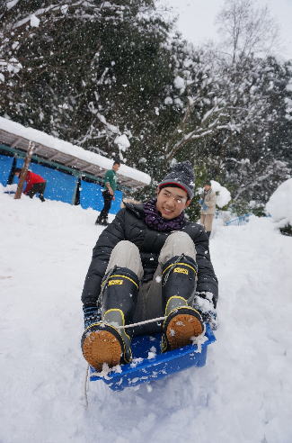 でも仲間たちは大喜び。ジャンパー着て、長靴を履いてマフラーして、皆で外に出ました。