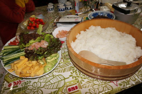 今日は手巻き寿司となめこの味噌汁、デザートはイチゴです。