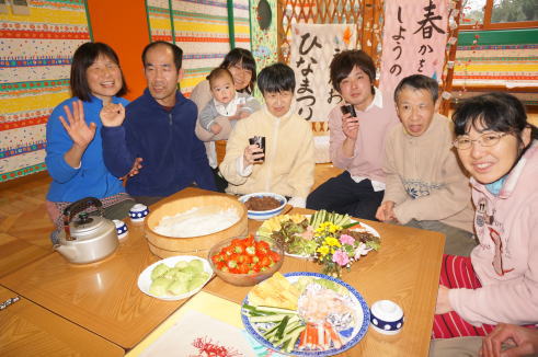 娘さんが大きく成長されたから「次は是非止揚学園で可愛がってあげてください。」と、いただいた7段飾りのお雛様にまず「はい、どうぞ。」と手巻きずしを持って行ってあげました。