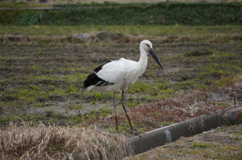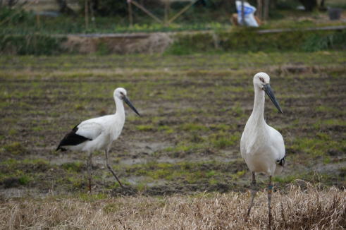 止揚学園のすぐ近くにコウノトリが2羽飛来しました。