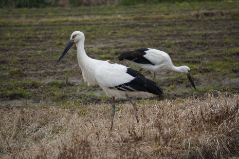 この2羽はメスで1羽は発信機を付けています。ザリガニやカエルを捕食しているそうです。