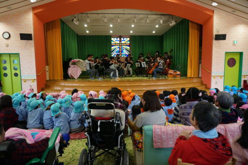 近所の能登川ひばり保育園と能登川第一幼稚園からも、園児さん130人が聴きに来てくださいました。