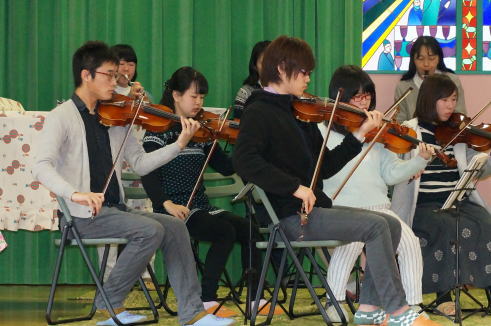 管弦楽器での演奏5曲、弦楽器での演奏3曲、全体で1曲「カノン」「シンコペーティット・クロック」などの馴染みのクラッシックから「夢を叶えて」(ドラえもんの主題歌)ジブリなど子供さんたちが喜ぶ曲を9曲を演奏してくださいました。