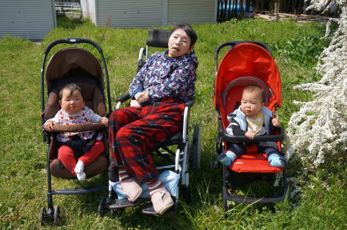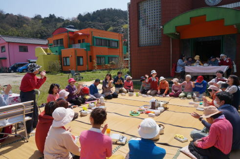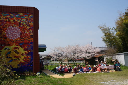 お天気が良かったので、急遽おかずをお弁当箱に詰めて止揚学園の「働く家」の前でお花見をしました。