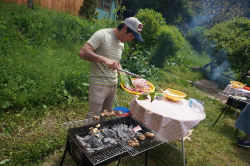 朝から男性職員はテントをはったり、炭をおこしたり、肉を焼いたり....かっこいいです!!