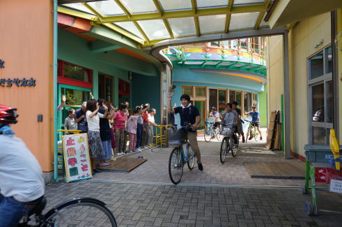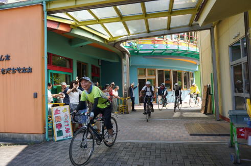 9月は琵琶湖一周サイクリングの途中で止揚学園に寄って下さり、一緒に昼食を食べた後、再び出発する皆さんを見送るのが恒例となっています。