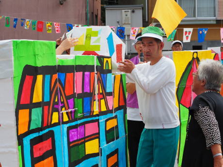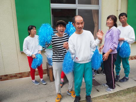 今年のフォークダンスは「ワクワクいこう」という手作りの歌です。今年の夏、琵琶湖にキャンプに行った時、みきおさんが新任職員の稲上さんに「ワクワクいこか」と言った言葉から生まれました。