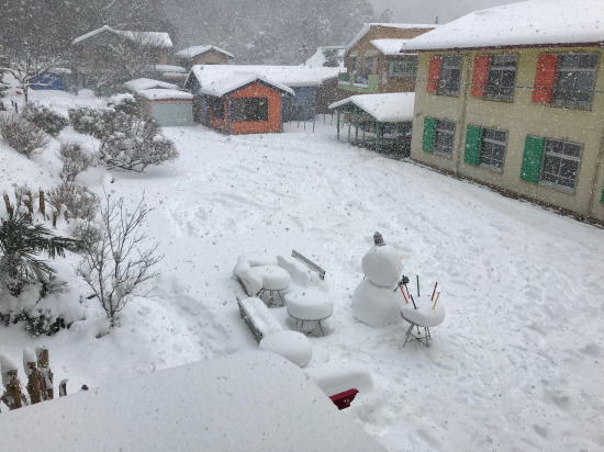 雪だるまさんの誕生日 こちら滋賀、東近江市は大雪です。 寒いし、風邪やインフルエンザが流行ったりで冬はいやだな・・・と思いがち。 でも今日は、こんな可愛い雪だるまさんが生まれました!! 病気の仲間たちを励まそうと、男性職員が朝から作ってくれました。 お誕生日だから、お祝いのケーキもあります。\(゜ロ\)(/ロ゜)/ カラフルなろうそく立ってます。 やっぱり冬も素敵ですね・・・心が温かくなりました。 皆様も風邪などひかれませんように・・・