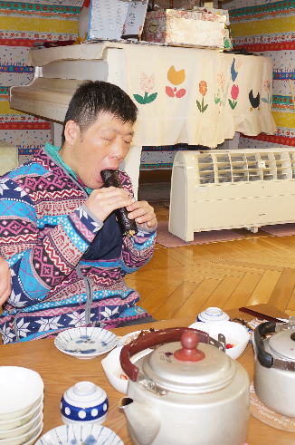 何がなんでも長い巻きずしをお箸でさして、いつものように食べる田代さん。