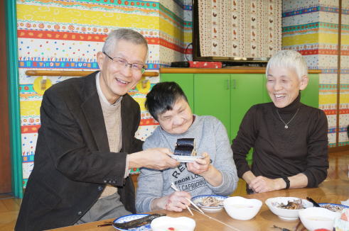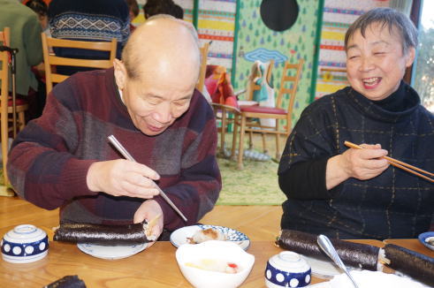 朝から台所で巻いた130本の恵方巻きやいわしなどを、昼食の時にいただきました。