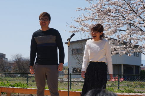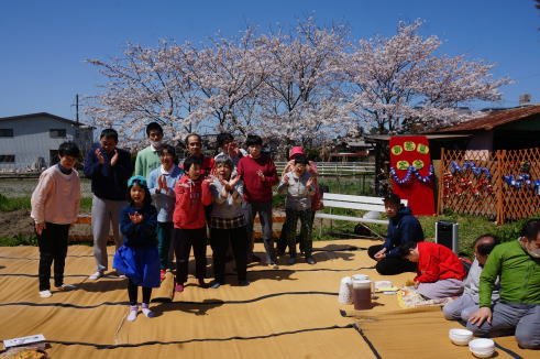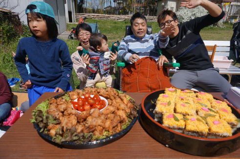 大村寿司(長崎の郷土料理)・から揚げ・アイスクリームなどなど沢山の手作りのお料理を囲んで止揚学園のお庭でお花見をしました。