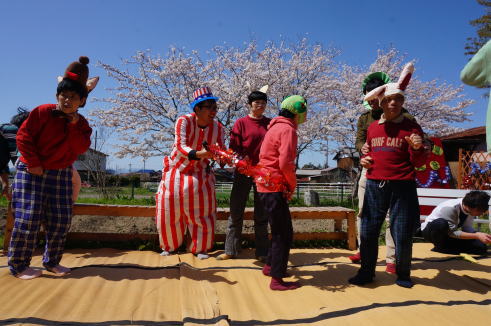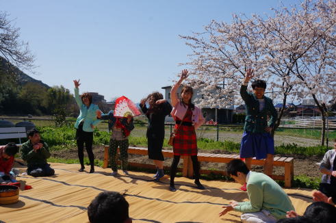 今日は、ただのお花見ではありません。バブリーお花見です。(バブルの時代の出し物が続々でてきます。)エリマキトカゲやウーパールーパーという生き物たちがでてきました。(バブル時代をすごされた方はよくお分かりだと思います)ヽ(^o^)丿