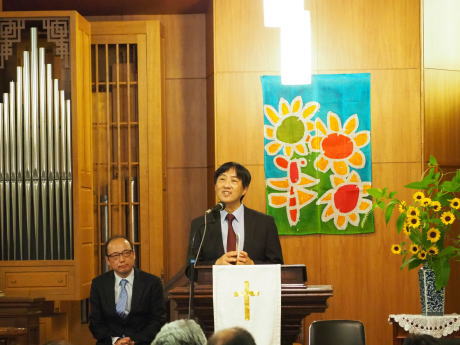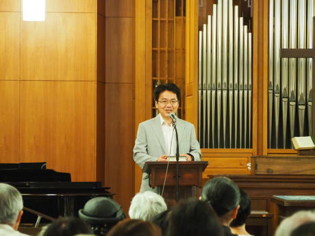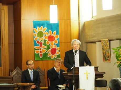 今回の出版記念講演会の実行委員をして下さった京都教会牧師の入先生の挨拶。
