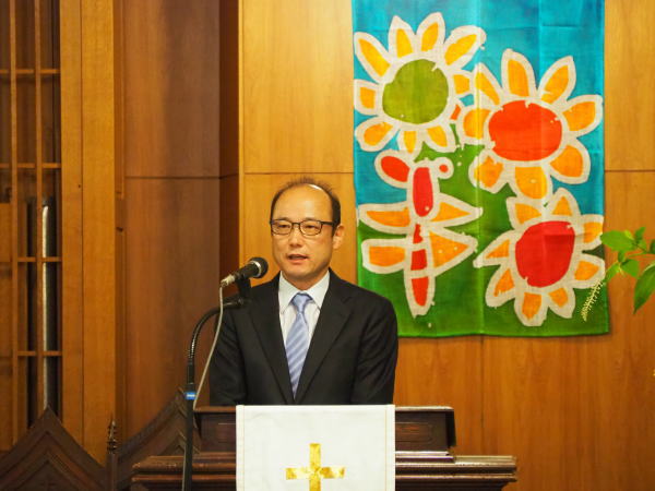 洛南教会牧師の井上先生がお祈りをして下さいました。