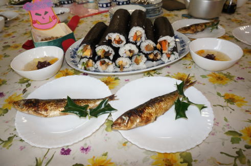朝から、ご近所のふじの会の皆様が恵方巻きを作って下さいました。