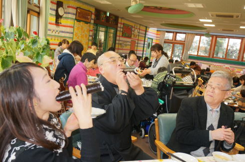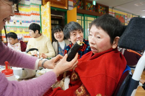 最後は止揚学園恒例「福は内、鬼も内、風邪は外」と掛け声をかけ、みんなが元気ですごせますようにと祈りつつ、豆まきをしました。