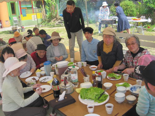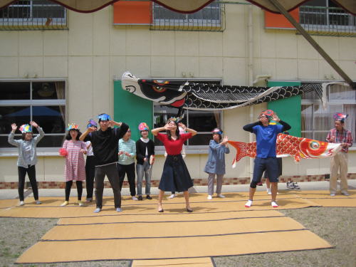恋ダンスではなく鯉ダンスを踊って開会宣言!!「よし、お肉を沢山いただくぞ!」とみんな意気揚々としています。以前に実習した若い彼も手伝いに?食べに?来てくれました。