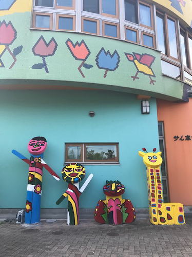 止揚学園に来て下さる皆様を玄関でこのトーテムポールがお出迎えします。