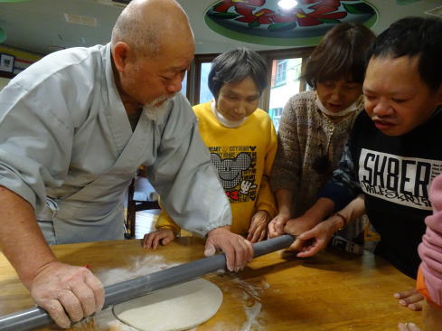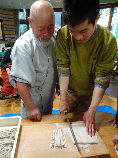 隼人さん、そばを切るのに初挑戦!!上手!!