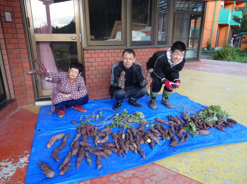 皆で育てた大きなさつまいもが沢山掘れました。大学芋やリンゴとさつまいもの重ね煮、天ぷらなどにして美味しくいただきました。