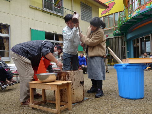 そしてラストを飾りますのは今年で5年目を迎えます、久友会様との餅つき大会です。株式会社近江兄弟社の皆様もご一緒に参加してくださいました。