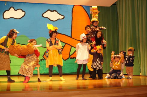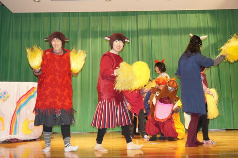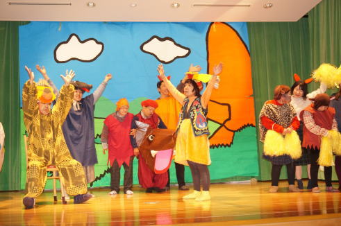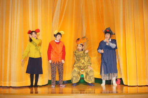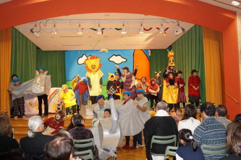 祝会。仲間たちの劇「ライオンのおとのさま」の始まりはじまり・・・
