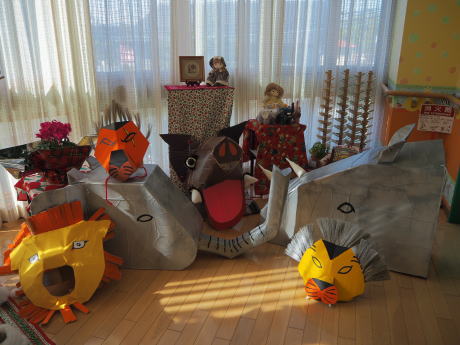 使用した衣装や被り物。結構クオリティ高いです。職員のみなさまも本当にお疲れ様でした。