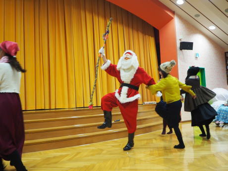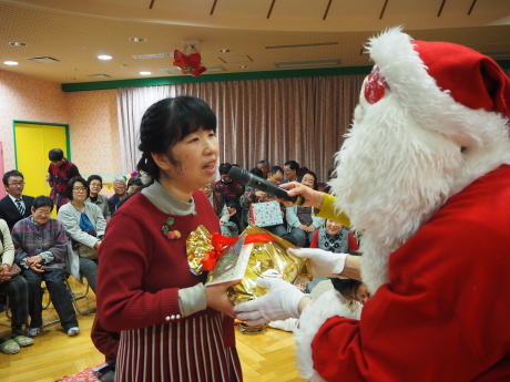 今年もサンタクロースのおじいさんが来て下さいました。結構若いです(笑)