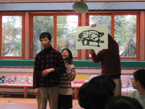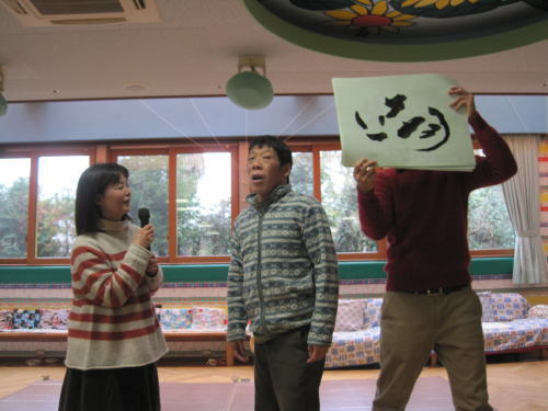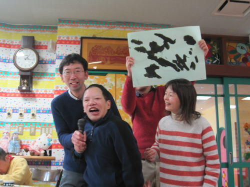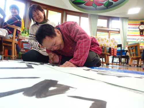 美味しいおやつの後は書初め大会。真剣です!!みんな今年の抱負を書きました。