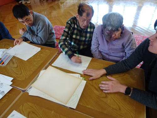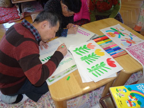 園内で過ごすことが多いのでみんなで新しい建物の廊下部分に飾る作品のデザインや、家のテラス部分にはめ込むタイル画のデザインを考えています。